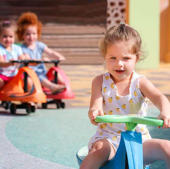 Our outdoor area is a large, green, inviting space that celebrates sensory-based play and development. It is age appropriate and incorporates a range of climbing, balancing and ride-on equipment, all carefully designed to support and encourage physical development.